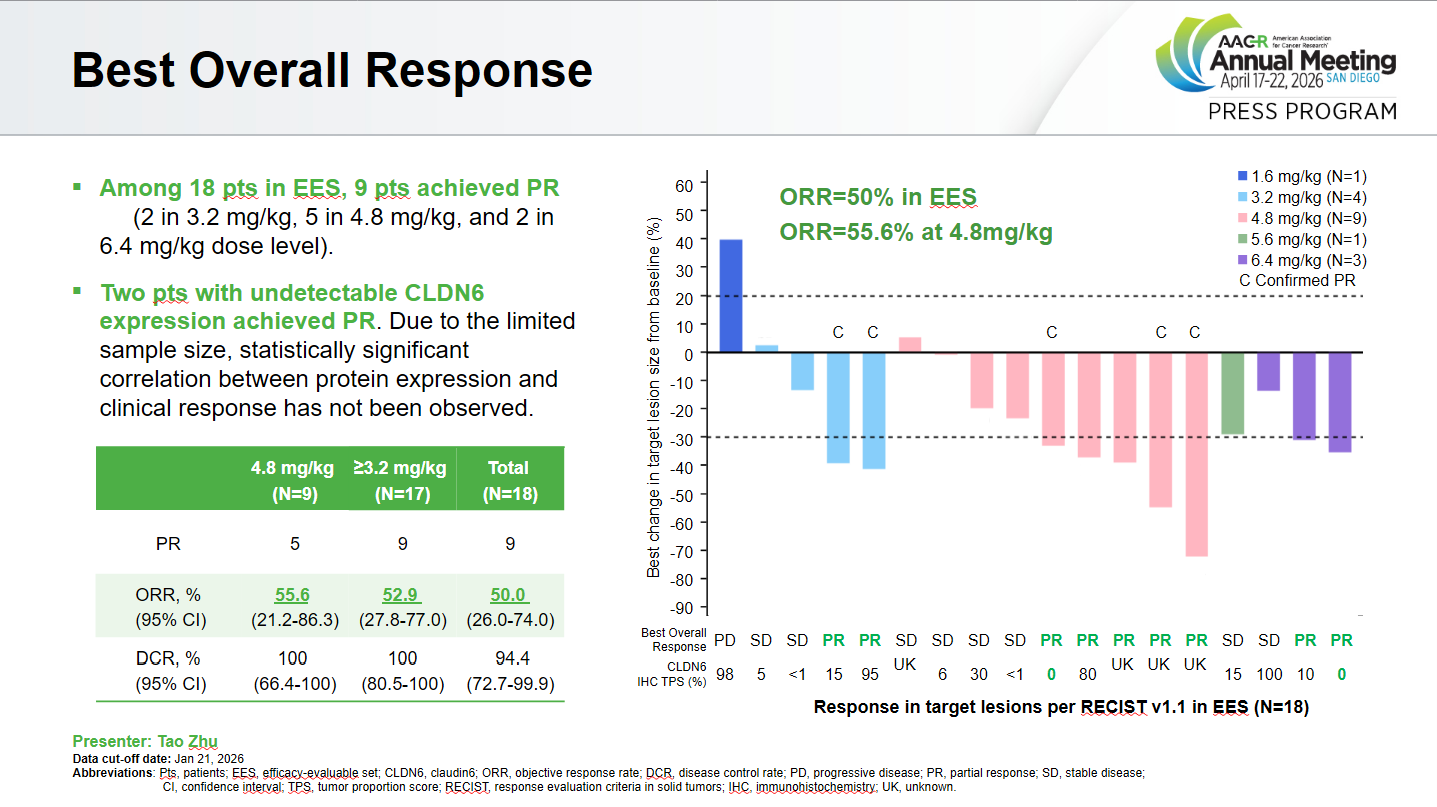 Note: *Claudin6+ve PROC only at 2.4-3.4mg/kg. Source: AACR & ESMO.