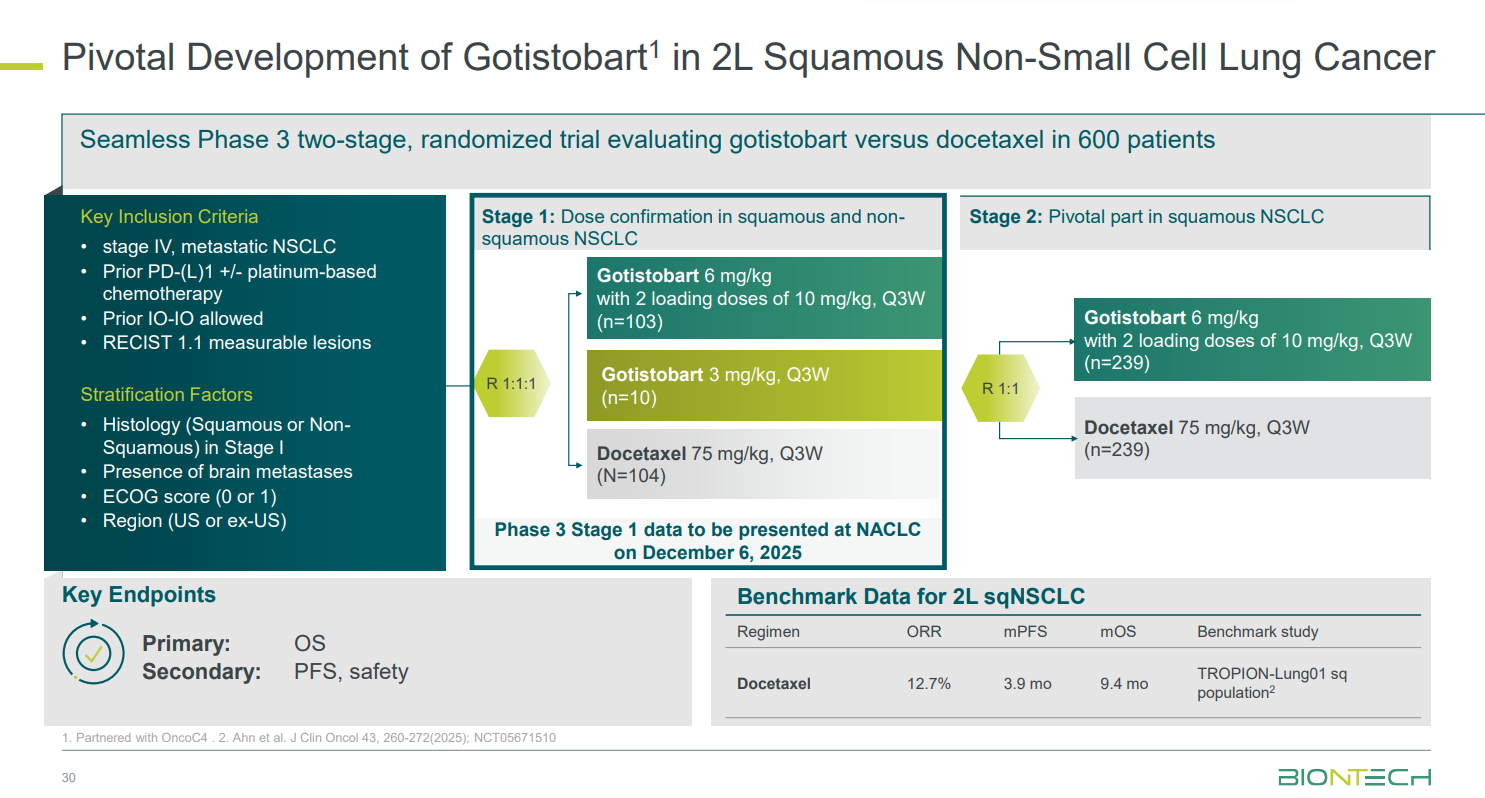 BioNTech therefore has a chance to move gotistobart into an underserved niche. The German group is already recruiting into the second stage of Preserve-003, testing gotistobart 6mg/kg versus docetaxel in squamous patients only. Results are expected in 2026.