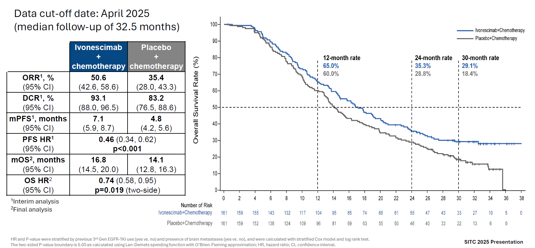 That’s because ivonescimab is already approved in China on the basis of Harmoni-A, in EGFR-mutant NSCLC after progression on anti-EGFR TKI therapy. For investors in Akeso’s partner Summit it's more important that the Harmoni-A survival curves back an earlier detail dribbled out concerning the analogous, but global, Harmoni trial, which includes many patients from Harmoni-A, but which failed for OS.